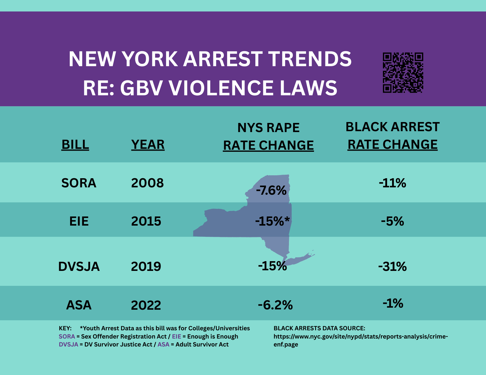 Following the passage DVSJA, you can see a Statewide change in rape by -15% and a change in the rate black people were arrested of -31% when you compare the year before and the year after. (40.7% x 900 arrests vs. 44.5% x 568 arrests)